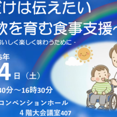 どんな障害があったとしても「ふれあいたい」「味わいたい」「動きたい」思いは一緒です。そんな思いに応えたいひろがりです。今回は『意欲を大切にした食行動』という視点から、田角先生に講演してもらいます。また、新しい事業「医療型 […]